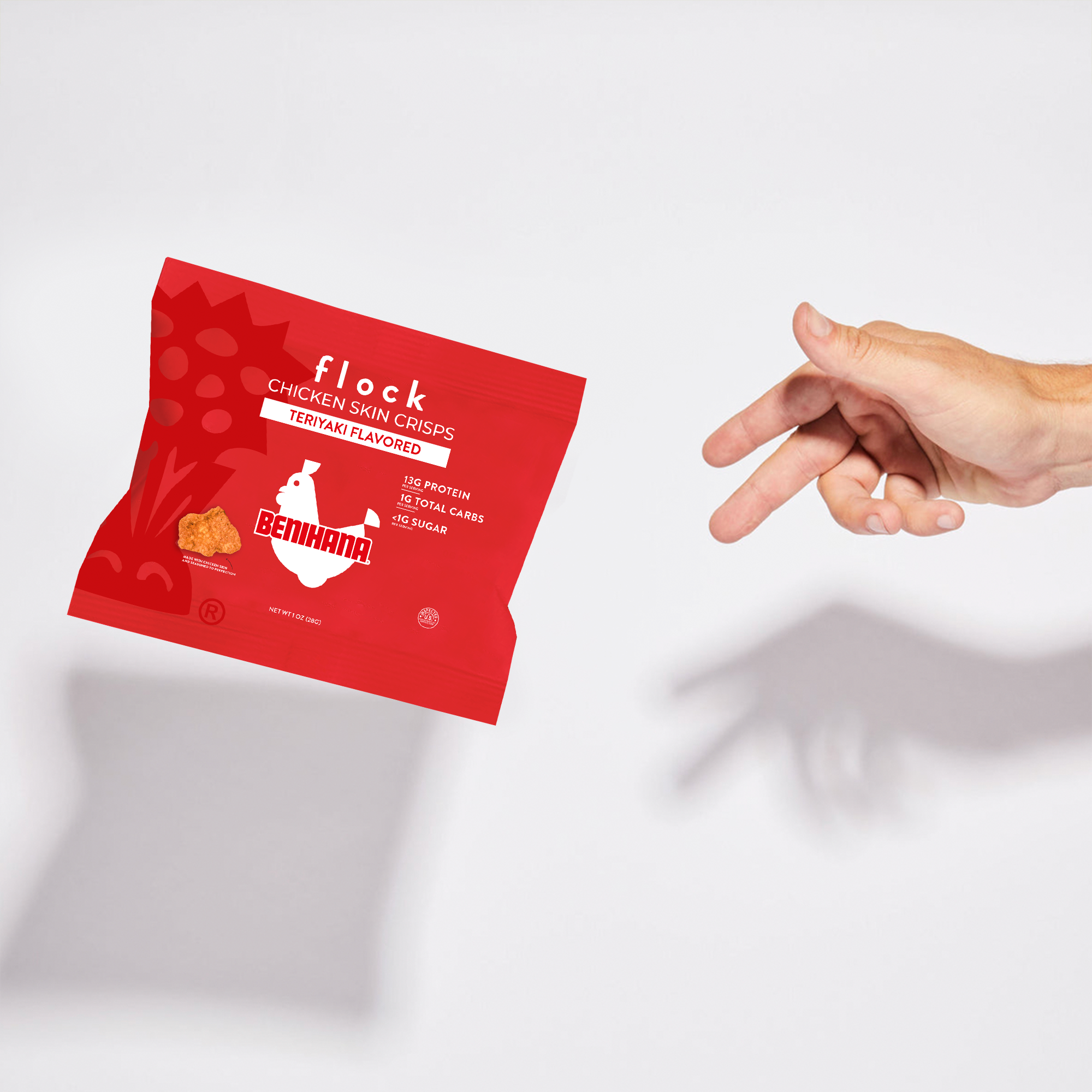 After round after round dialing in the perfect umami balance, we locked in a teriyaki that hits sweet, savory, and craveable in the most addicting way. Introducing: Flock x Benihana Teriyaki Chicken Skin Crisps. Crispy, glossy, snackable bites that deliver big hibachi-style flavor — no reservation required.