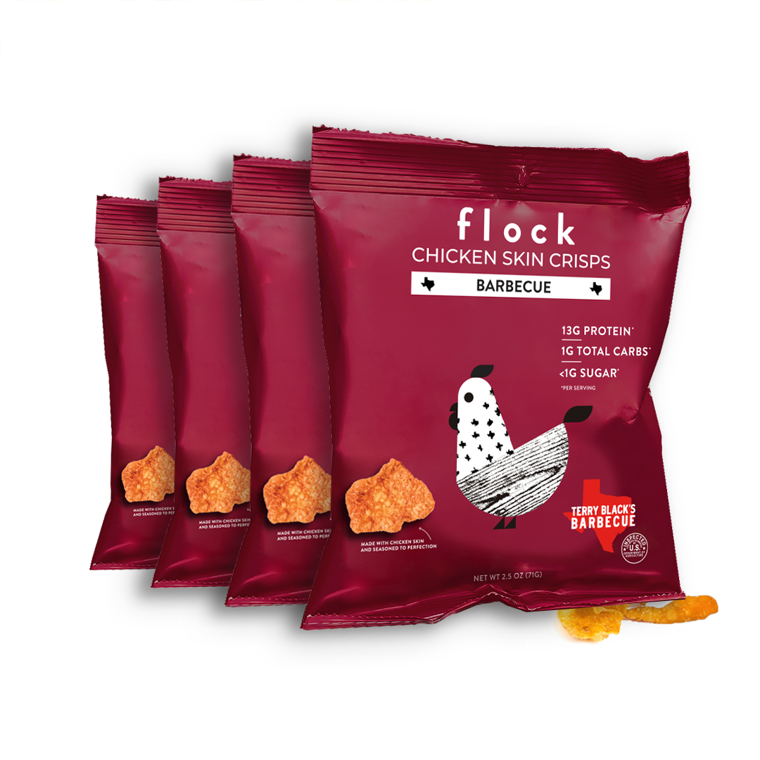 Terry Black's Barbecue style Flock is now available in 2.5 OZ bags ! The same great taste + crunch as the original Terry Black's Barbecue Flock but now 2.5x the size. Each case comes with 4 bags for 10 total servings - great for sharing with friends + family.